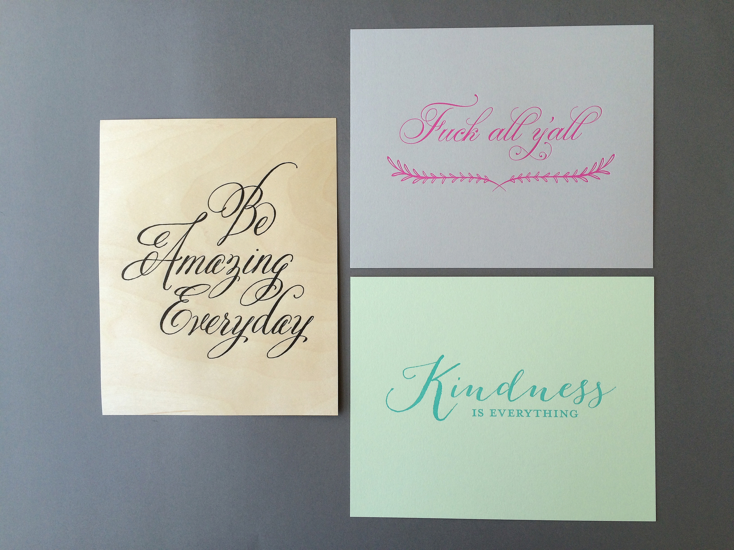 We like to call this line Cards for Dudes, but really we mean cards for anyone with a slightly sarcastic, witty sense of humor whose friends and family appreciate and admire a healthy dose of honesty.